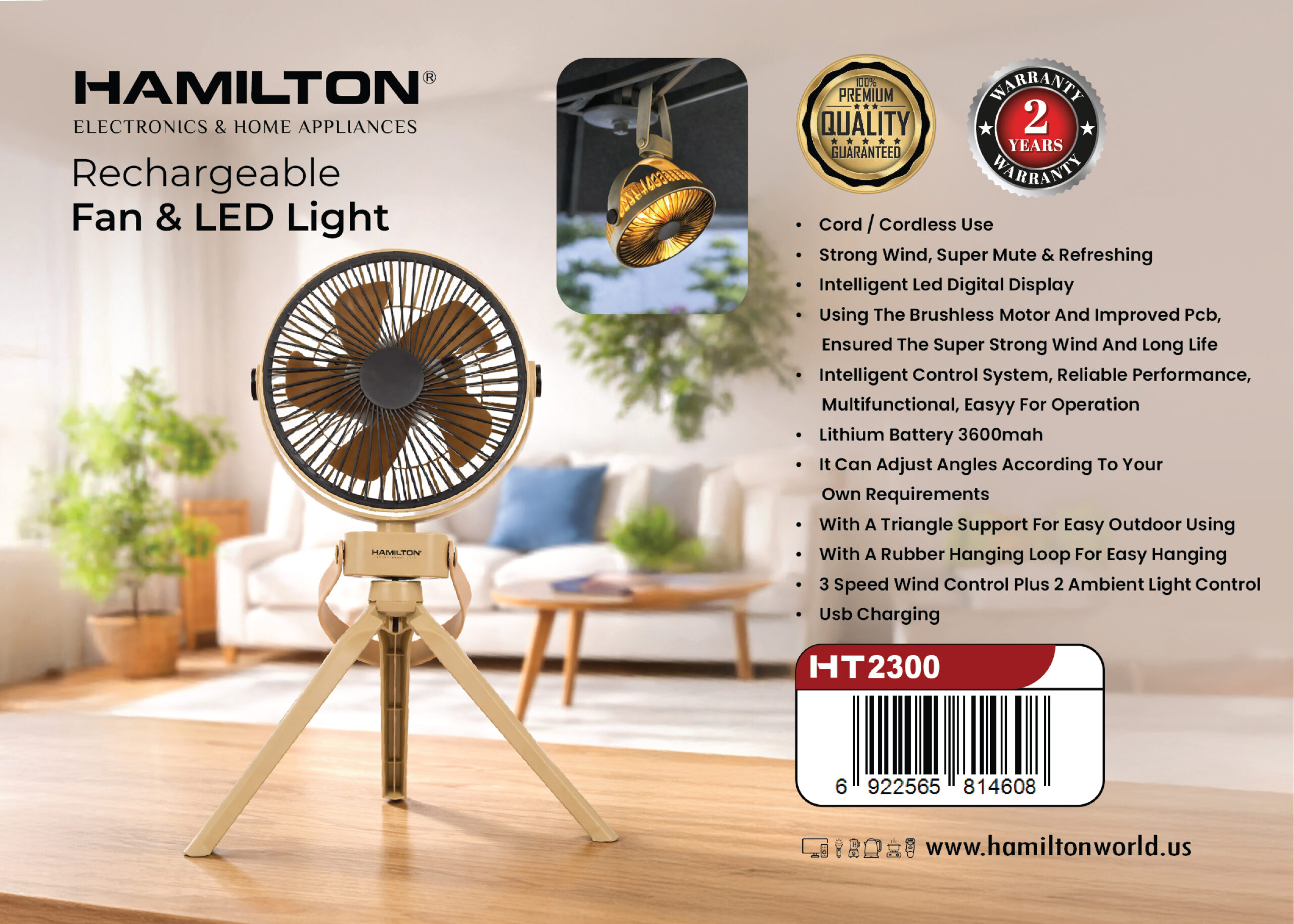 HAMILTON RECHARGEABLE FAN & LED LIGHT