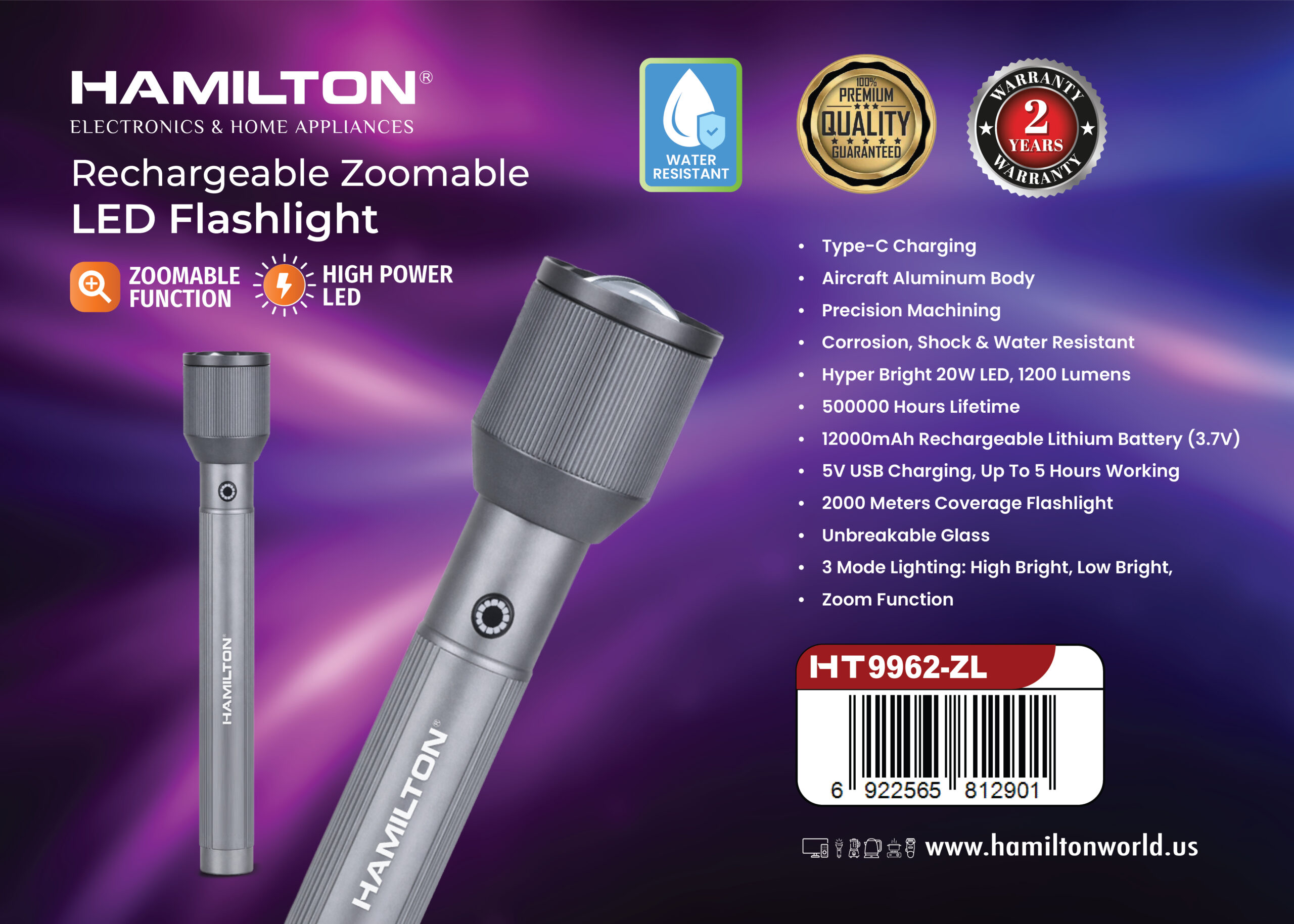 HAMILTON FLASHLIGHT (ZOOMABLE) 20W WATERPROOF DESIGN